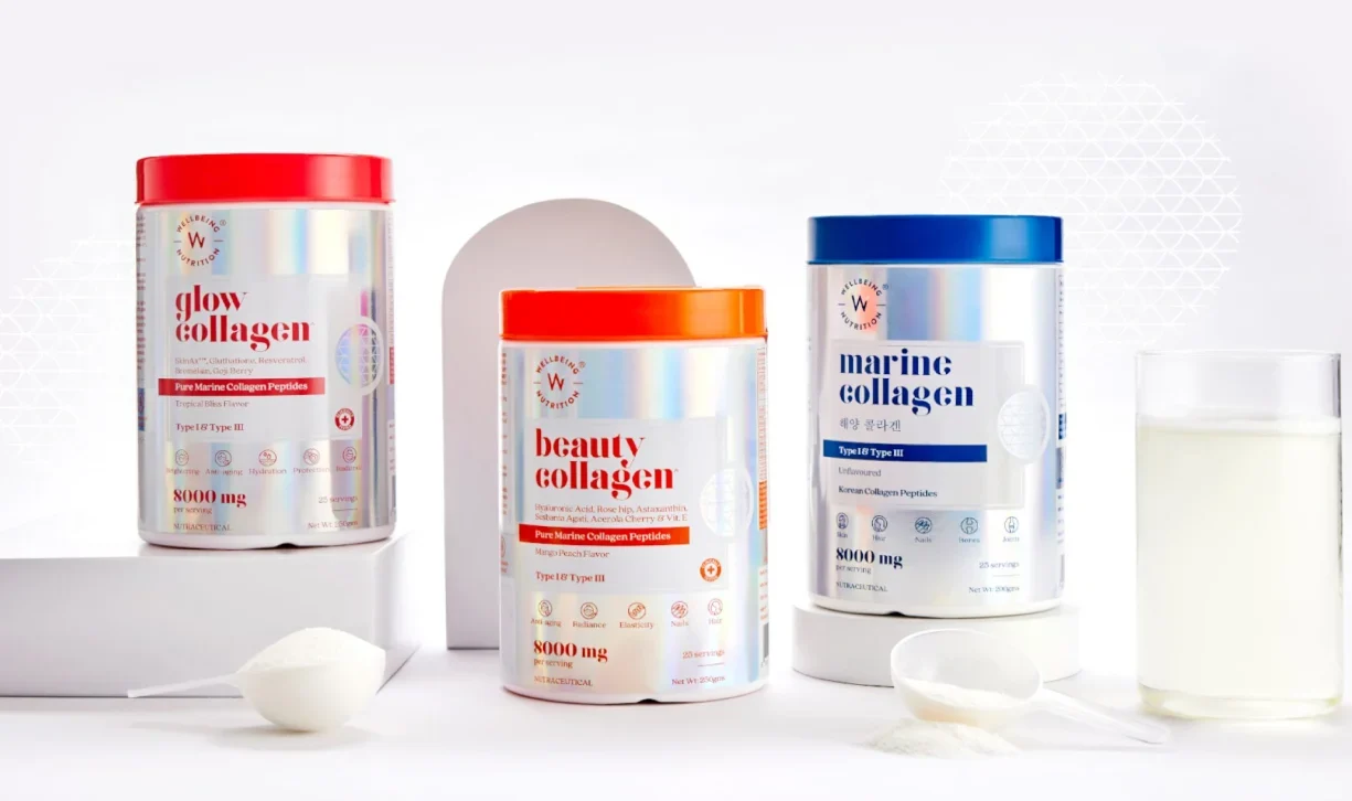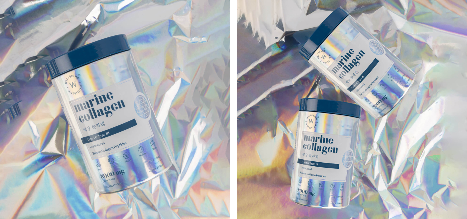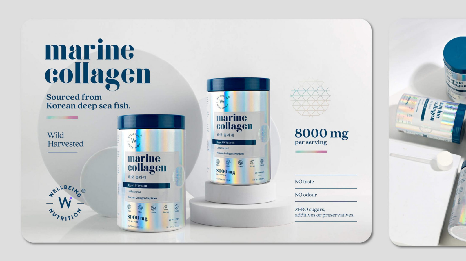 When we were asked to build the packaging system for Wellbeing Nutrition’s platinum-grade collagen, we knew we had to break some stereotypes. This product’s story deserved a unique and effective presentation.