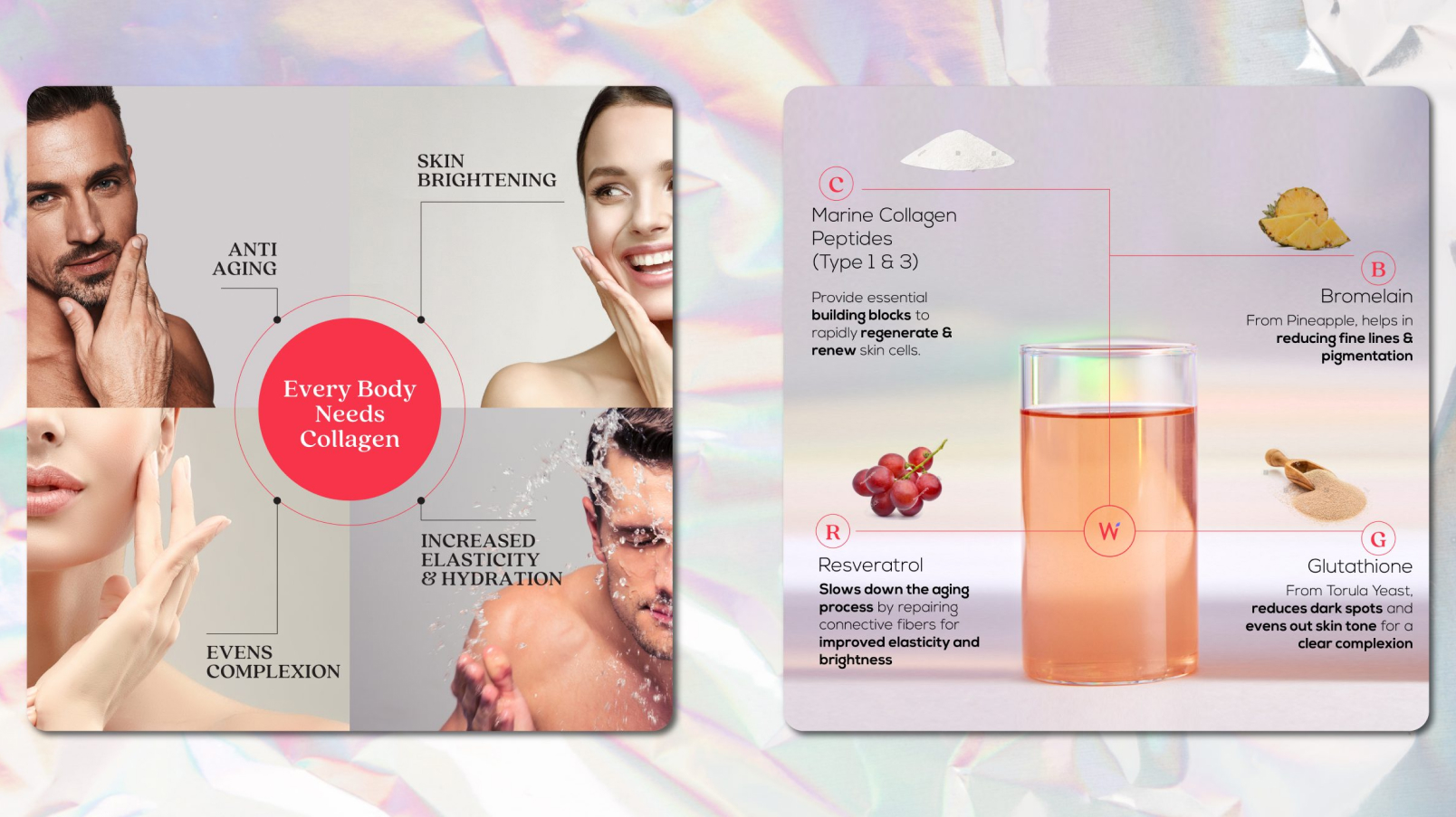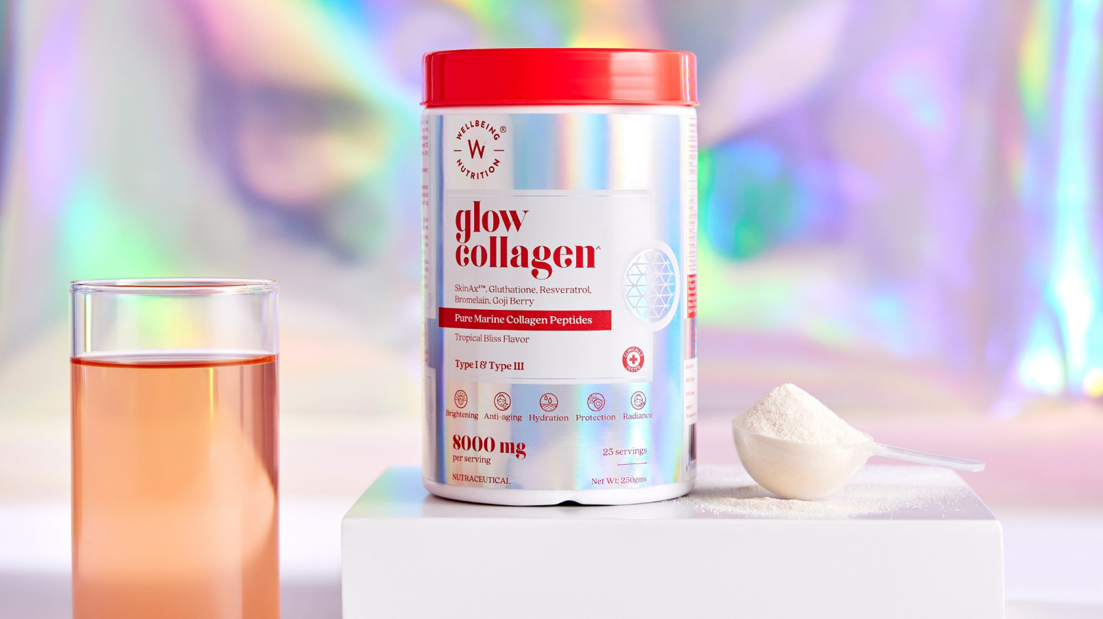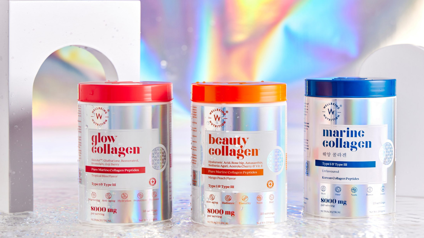 When we were asked to build the packaging system for Wellbeing Nutrition’s platinum-grade collagen, we knew we had to break some stereotypes. This product’s story deserved a unique and effective presentation.